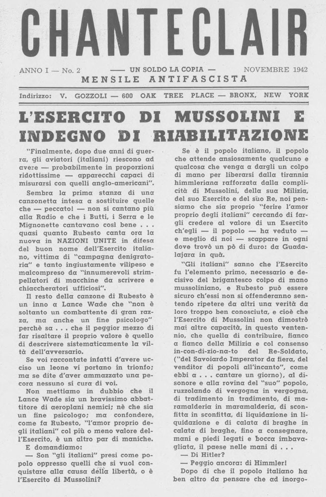 il beffardo (V. G.?), E. Bergonzi (New York), Chanteclair, il compilatore, Azzo D’Arezzo, Eugene De Rango (Chicago), Angelo De Vitto (Detroit), Dedo, Fedra [F. Gozzoli], G. Floria, T. Giovanni (Monticchio), Enzo Gozzoli, Virgilio Gozzoli [Vir], I’ ’trrinca, Celestino Lalli, Margherita [M. Gozzoli], noi, Gold O’Bay, il redattore, T. Tamburino, Armando Tiberi (Chicago), uno che c’era, Pedro Vallina (Solidaridad obrera), Vir, …